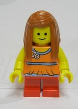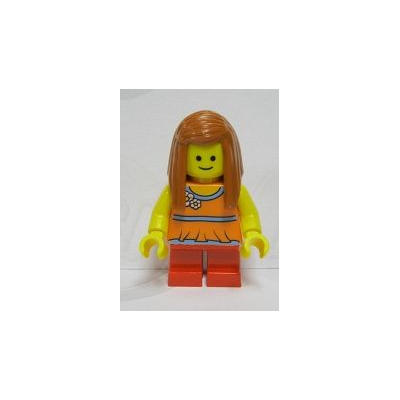 Lego Minifigur TWN161: Child, Girl, Orange Torso Halter Top with Medium Blue Trim and Flowers Pattern, Short Legs