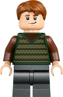 Lego Minifigur HP515: Fred Weasley - Dark Green Striped Sweater, Dark Bluish Gray Medium Legs