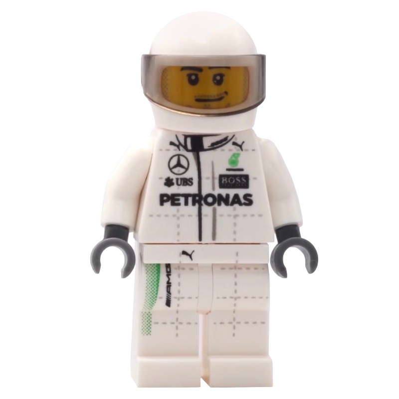Lego Minifigur SC043: Race Driver, White Torso, White Legs, White Helmet, Mercedes