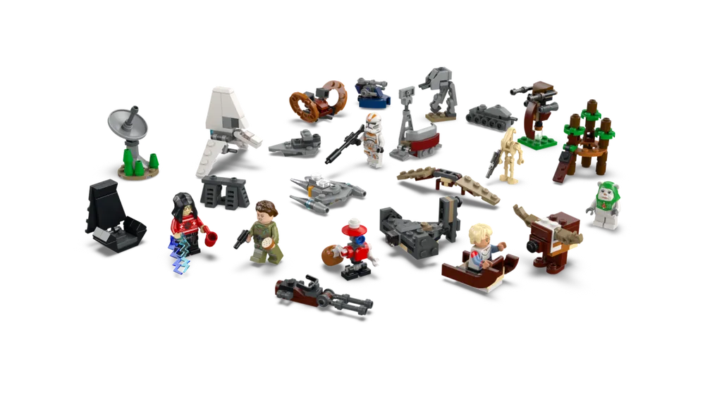 Das Set beinhaltet 9 LEGO Star Wars Figuren, darunter auch Imperator Palpatine, einen Ewok und einen Boxendroiden in weihnachtlichen Outfits, einen als Rentier verkleideten Gonk-Droiden sowie Omega mit einem Schlitten. In diesem coolen Vorweihnachtsgeschenk verbergen sich außerdem 15 Mini-Modelle, beispielsweise die Justifier, ein STAP-Speeder, der N-1 Starfighter des Mandalorianers, ein Klon-Kommandozentrum sowie ein Ewok-Dorf, die Star Wars Fans ab 6 Jahren fantasievoll spielen lassen.