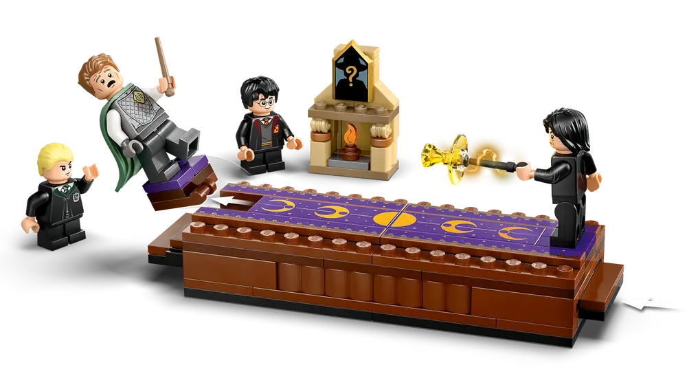 Stell eine magische Szene im Duellierclub aus dem Film Harry Potter und die Kammer des Schreckens™ mit diesem LEGO® Harry Potter™: Schloss Hogwarts™ Spielset (76441) nach. Das Set für Kinder ab 8 Jahren beinhaltet eine baubare Duellplattform für 2Minifiguren. Drück auf die Treppenstufen auf der einen Seite, um die Minifigur auf der anderen Seite hinunterzustürzen. Außerdem ist 1 von 14 Hogwarts-Porträts zum Sammeln enthalten, das über dem baubaren Kamin aufgehängt werden kann. 4 beliebte Charaktere – die LEGO Minifiguren Harry Potter und Draco Malfoy™, die beide einen Zauberstab und Zauberelemente halten, sowie Gilderoy Lockhart™ und Severus Snape™ – laden zu vielen kreativen Rollenspielen ein.