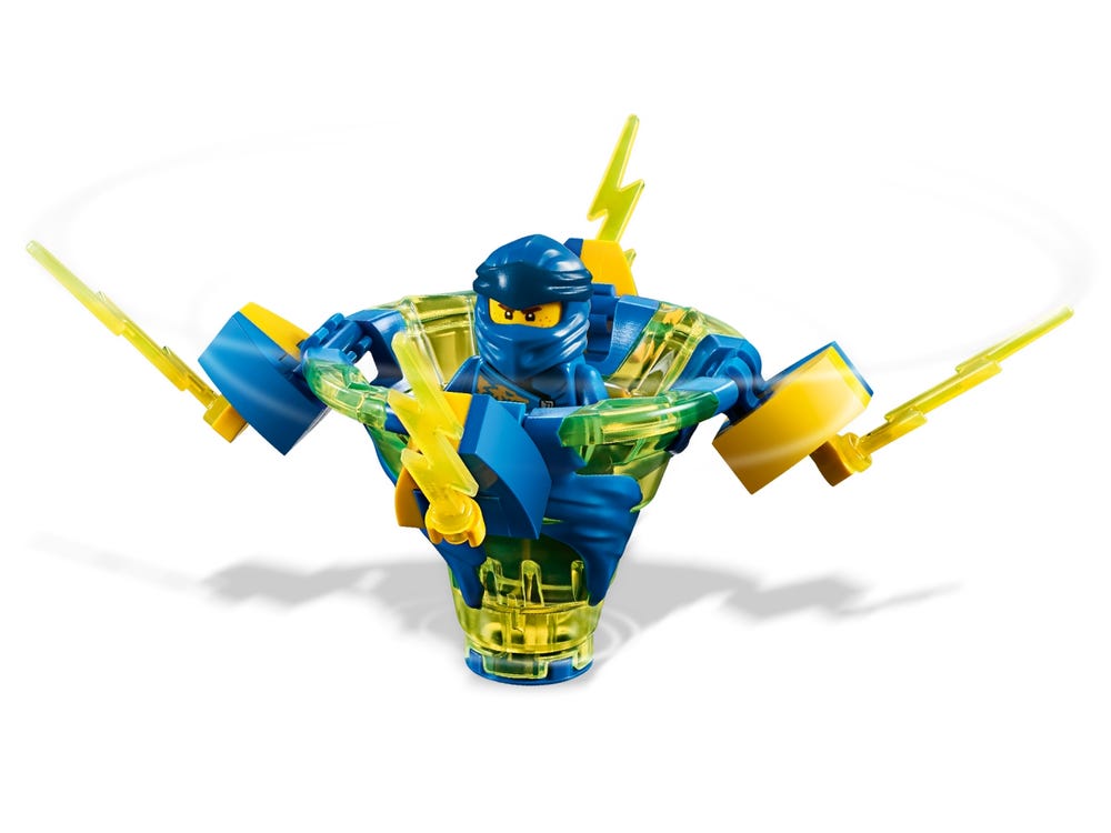 Das Set enthält LEGO® NINJAGO® Jay als Minifigur mit einem silbernen Katana. Das Ausrüstungselement für den Angriffsmodus ist mit 4 Blitzschlag-Elementen ausgestattet, das Element für den Verteidigungsmodus mit 4 Blitz-Elementen und das Element für den Geschwindigkeitsmodus mit 4 Stacheln. Dieses LEGO® NINJAGO® Spinjitzu-Set enthält außerdem 3 baubare Ausstellungsständer für Ausrüstungsgegenstände und -elemente.